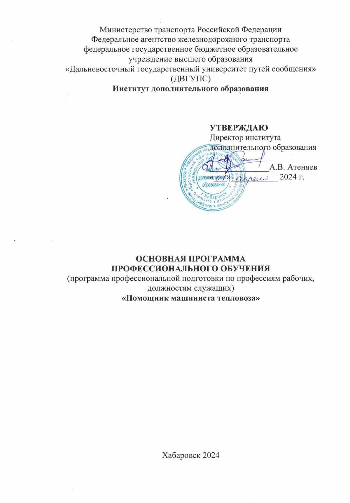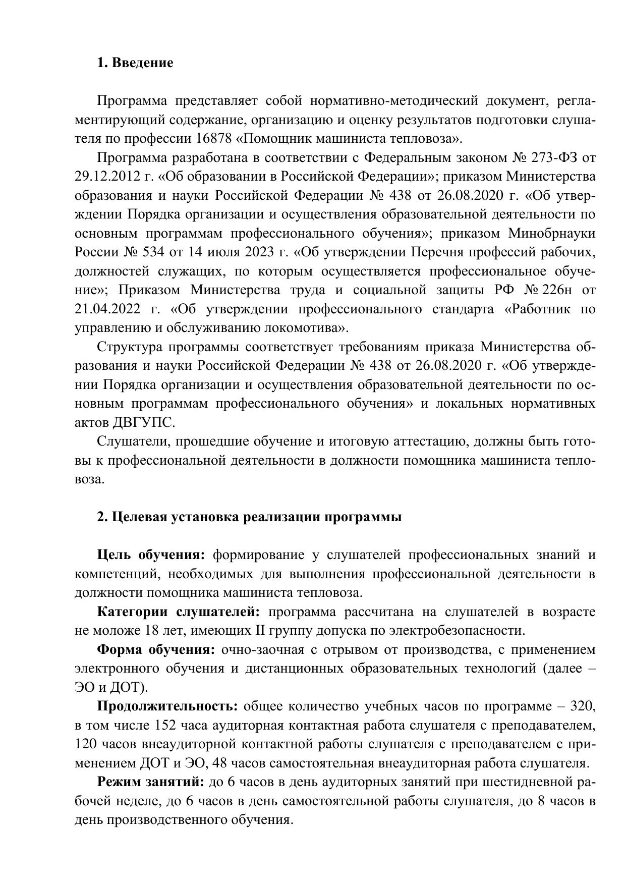 Помощник машиниста тепловоза : учебный план / . — Хабаровск : ДвГУПС, 2024. — 4 с. — Текст : электронный // УМЦ ЖДТ : электронная библиотека. — URL: https://umczdt.ru/books/1215/299611/ (дата обращения 16.04.2026). — Режим доступа: по подписке.