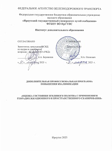 Оценка состояния земляного полотна с применением георадиолокационного и пространственного сканирования : программа повышения квалификации / . — Иркутск : ИрГУПС, 2025. — 13 с. — Текст : электронный // УМЦ ЖДТ : электронная библиотека. — URL: https://umczdt.ru/books/1385/299674/ (дата обращения 17.04.2026). — Режим доступа: по подписке.