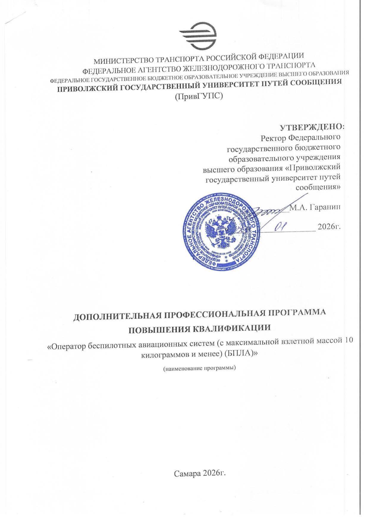 Оператор беспилотных авиационных систем (с максимальной взлетной массой 10 килограммов и менее) : программа повышения квалификации / . — Самара : ПривГУПС, 2026. — 29 с. — Текст : электронный // УМЦ ЖДТ : электронная библиотека. — URL: https://umczdt.ru/books/1311/299809/ (дата обращения 16.04.2026). — Режим доступа: по подписке.