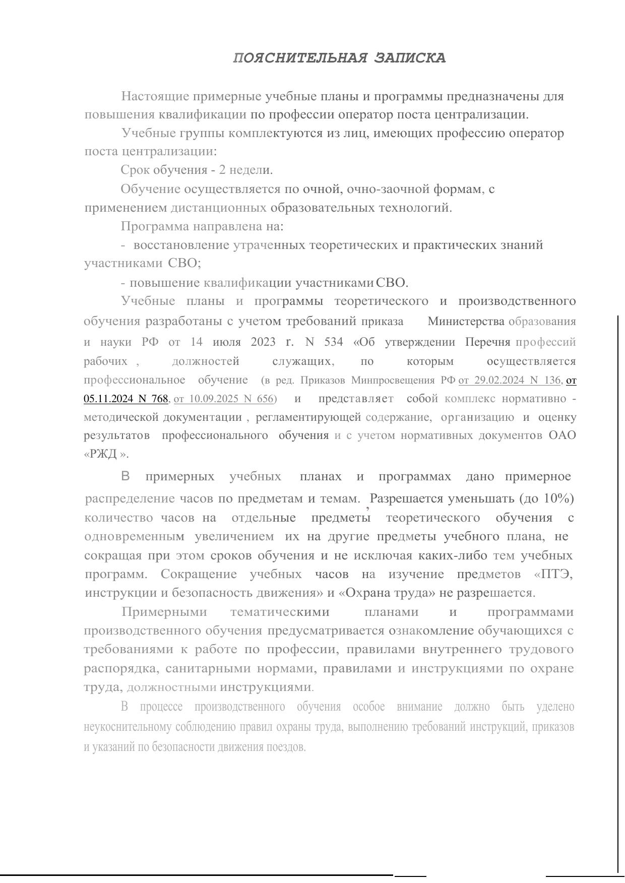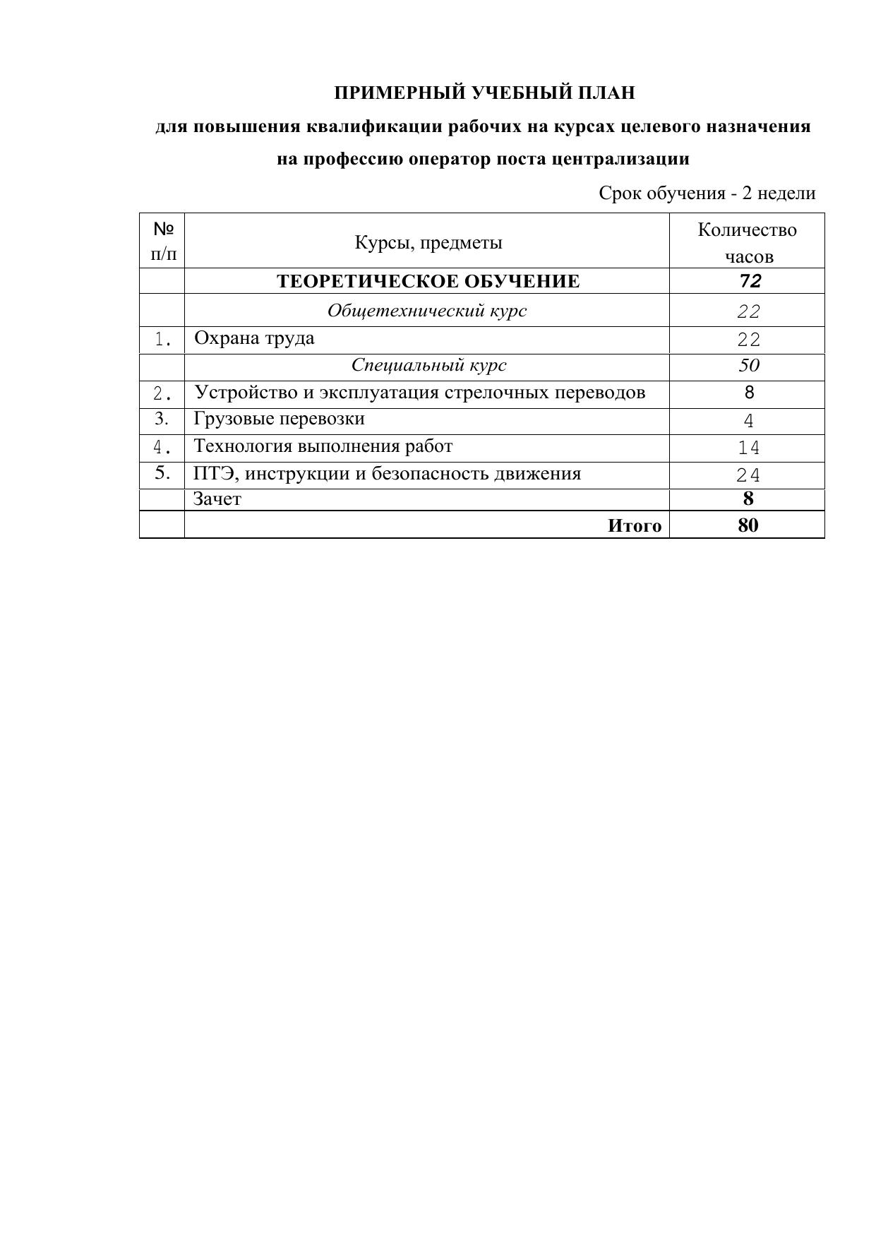 Категория слушателей: лица имеющие профессию оператор поста централизации. Форма обучения:  очная, очно-заочная, 80 часов. Ссылка на программу на сайте разработчика: