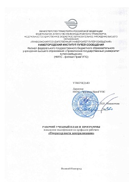 Оператор поста централизации : программа повышения квалификации / . — Нижний Новгород : НИПС - филиал ПривГУПС, 2026. — 13 с. — Текст : электронный // УМЦ ЖДТ : электронная библиотека. — URL: https://umczdt.ru/books/1311/299824/ (дата обращения 16.04.2026). — Режим доступа: по подписке.