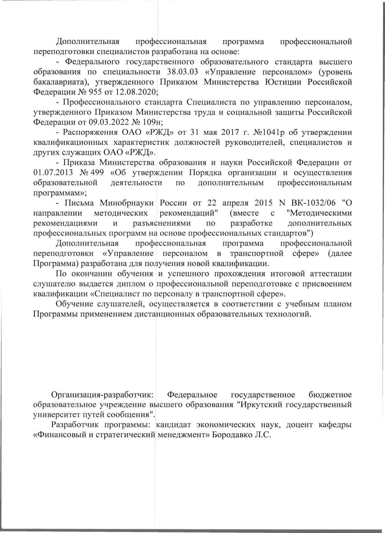 Управление персоналом : программа профессиональной переподготовки / . — Иркутск : ИрГУПС, 2024. — 15 с. — Текст : электронный // УМЦ ЖДТ : электронная библиотека. — URL: https://umczdt.ru/books/1388/299705/ (дата обращения 17.04.2026). — Режим доступа: по подписке.