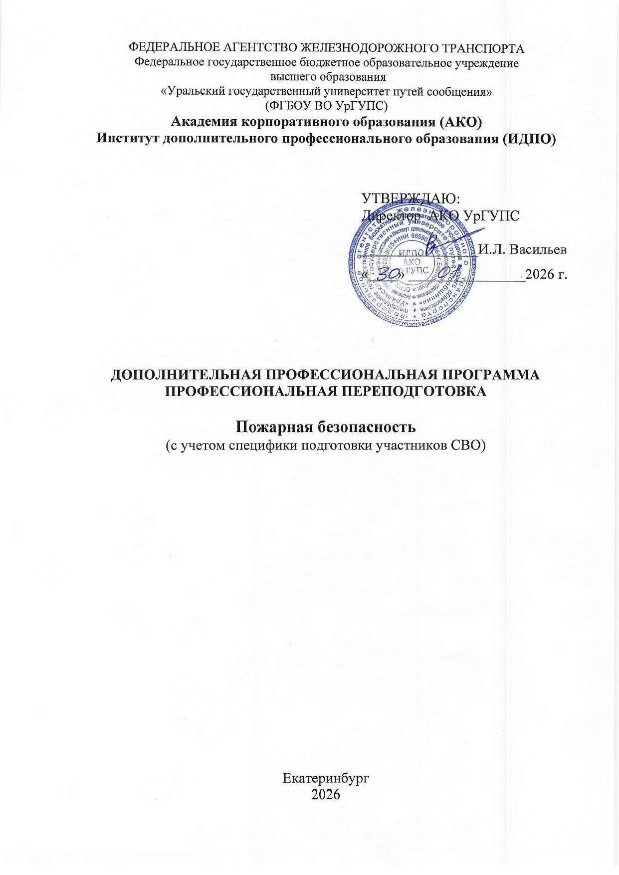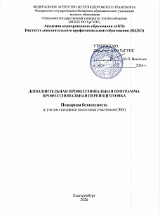 Пожарная безопасность : программа профессиональной переподготовки / . — Екатеринбург : УрГУПС, 2026. — 51 с. — Текст : электронный // УМЦ ЖДТ : электронная библиотека. — URL: https://umczdt.ru/books/1306/299883/ (дата обращения 17.04.2026). — Режим доступа: по подписке.