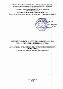 Автоматика и телемеханика на железнодорожном транспорте : программа профессиональной переподготовки / . — Екатеринбург : УрГУПС, 2026. — 56 с. — Текст : электронный // УМЦ ЖДТ : электронная библиотека. — URL: https://umczdt.ru/books/1306/299886/ (дата обращения 17.04.2026). — Режим доступа: по подписке.