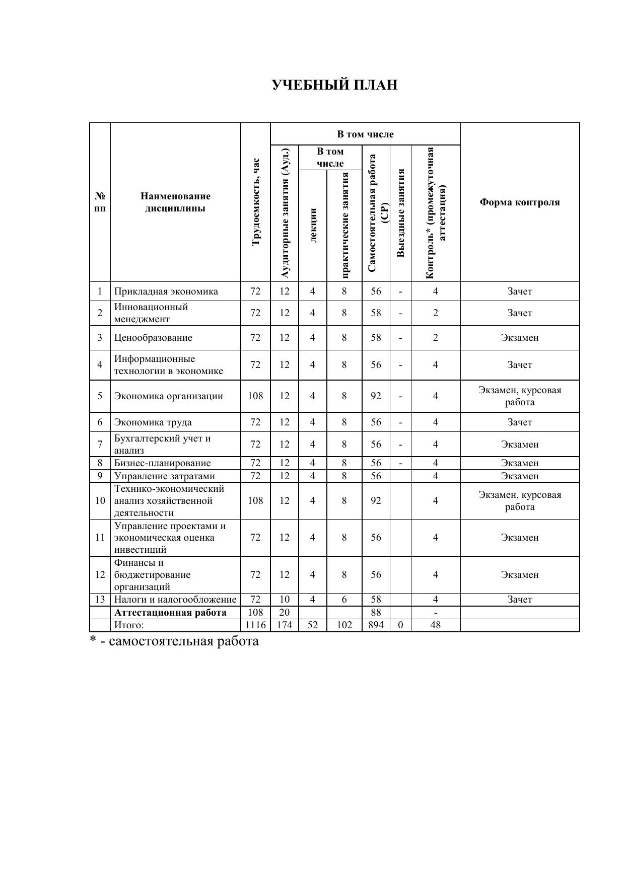 Форма обучения: очная, 1116 часа