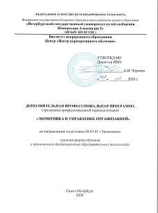 Экономика и управление организацией : программа профессиональной переподготовки / . — Санкт-Петербург : ПГУПС, 2026. — 134 с. — Текст : электронный // УМЦ ЖДТ : электронная библиотека. — URL: https://umczdt.ru/books/1283/299910/ (дата обращения 17.04.2026). — Режим доступа: по подписке.
