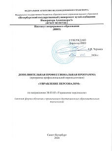 Управление персоналом : программа профессиональной переподготовки / . — Санкт-Петербург : ПГУПС, 2026. — 68 с. — Текст : электронный // УМЦ ЖДТ : электронная библиотека. — URL: https://umczdt.ru/books/1283/299911/ (дата обращения 17.04.2026). — Режим доступа: по подписке.