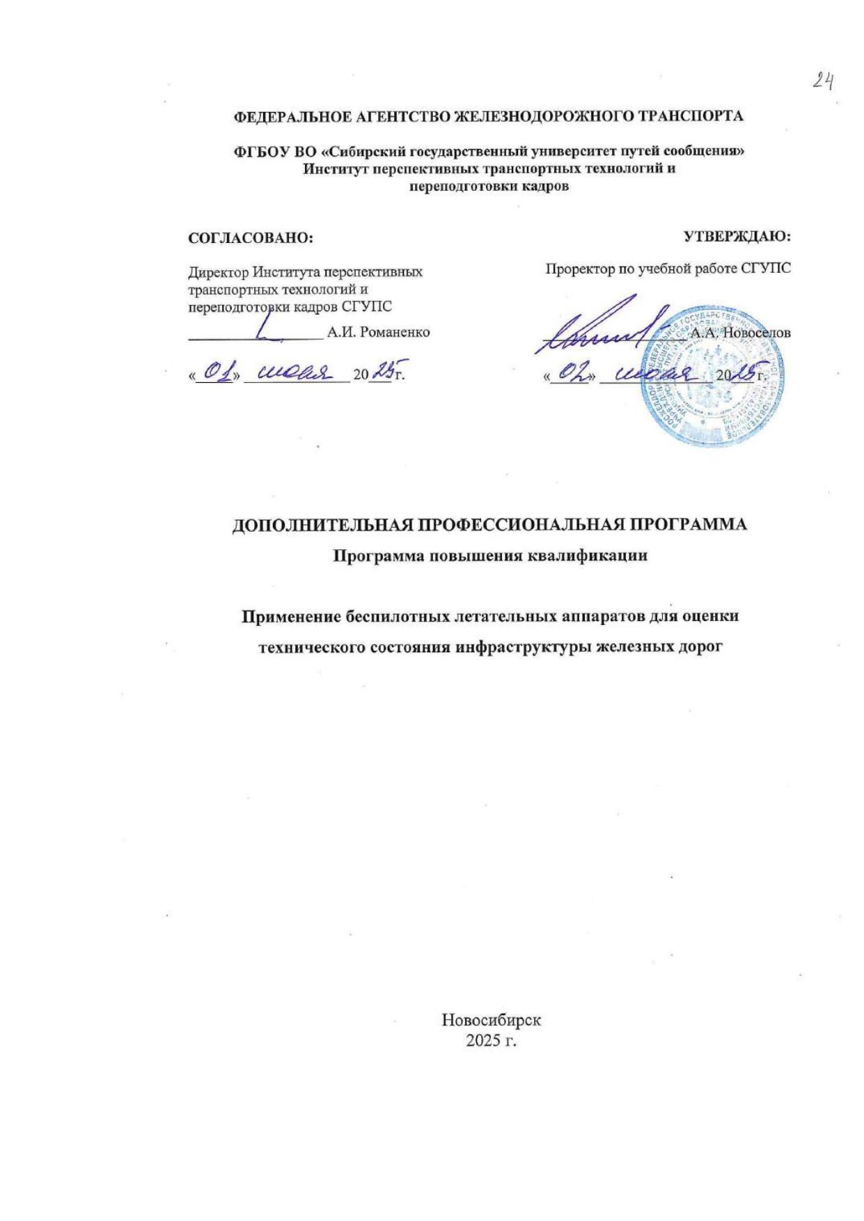 Применение беспилотных летательных аппаратов для оценки технического состояния инфраструктуры железных дорог : программа повышения квалификации / . — Новосибирск : СГУПС, 2025. — 11 с. — Текст : электронный // УМЦ ЖДТ : электронная библиотека. — URL: https://umczdt.ru/books/1308/299946/ (дата обращения 17.04.2026). — Режим доступа: по подписке.