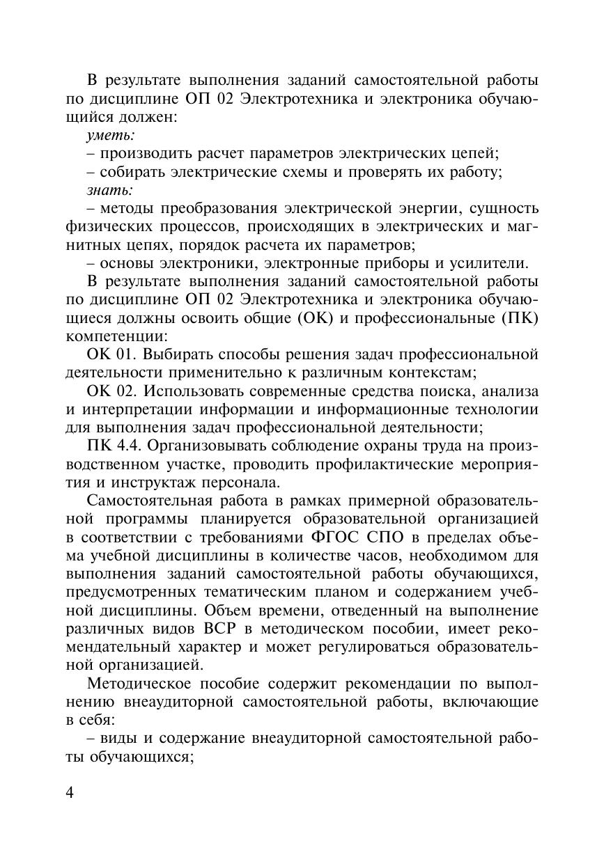 Методическое пособие Организация самостоятельной работы для обучающихся очной формы обучения образовательных организаций среднего профессионального образования ОП 02 Электротехника и электроника