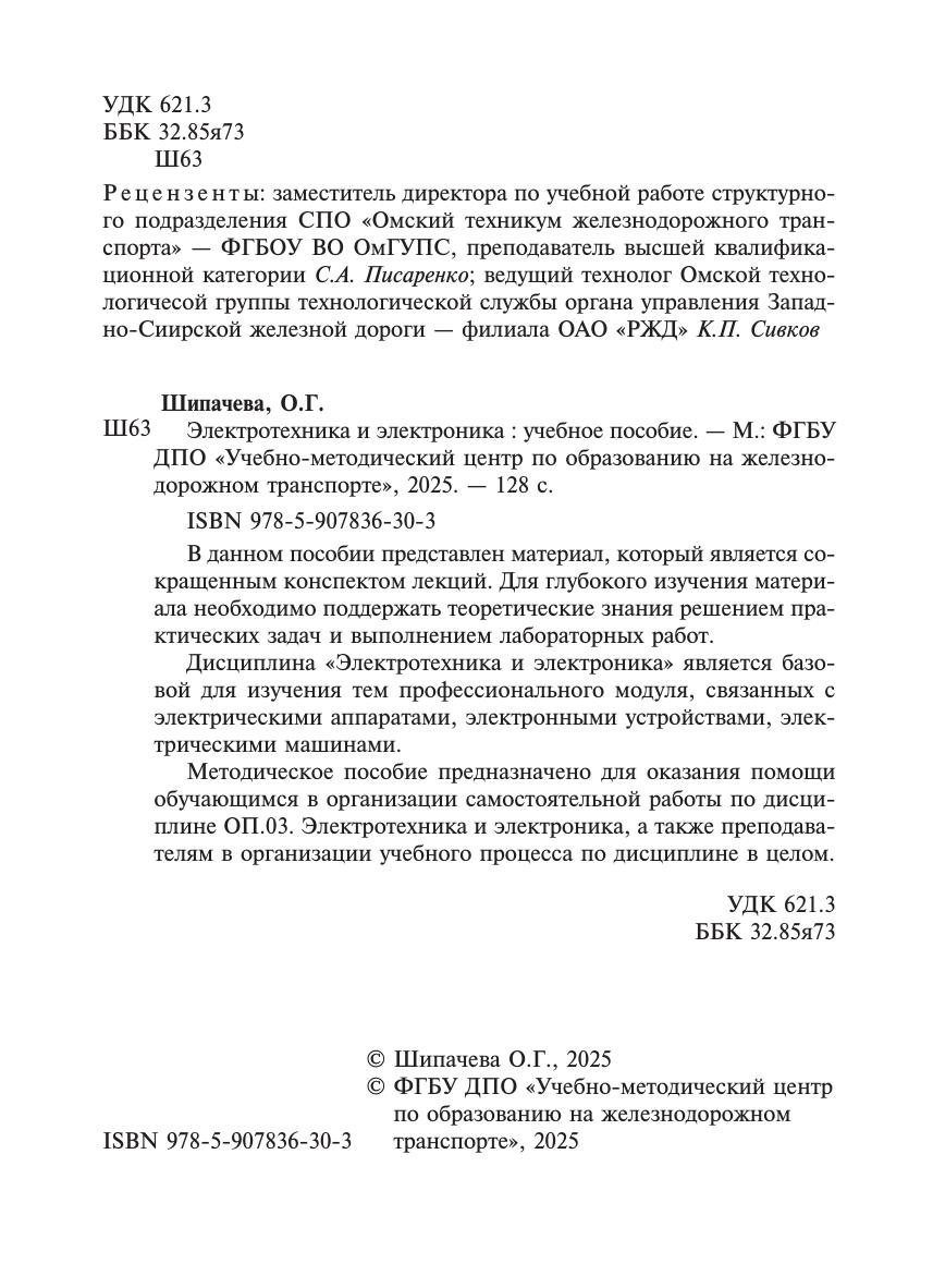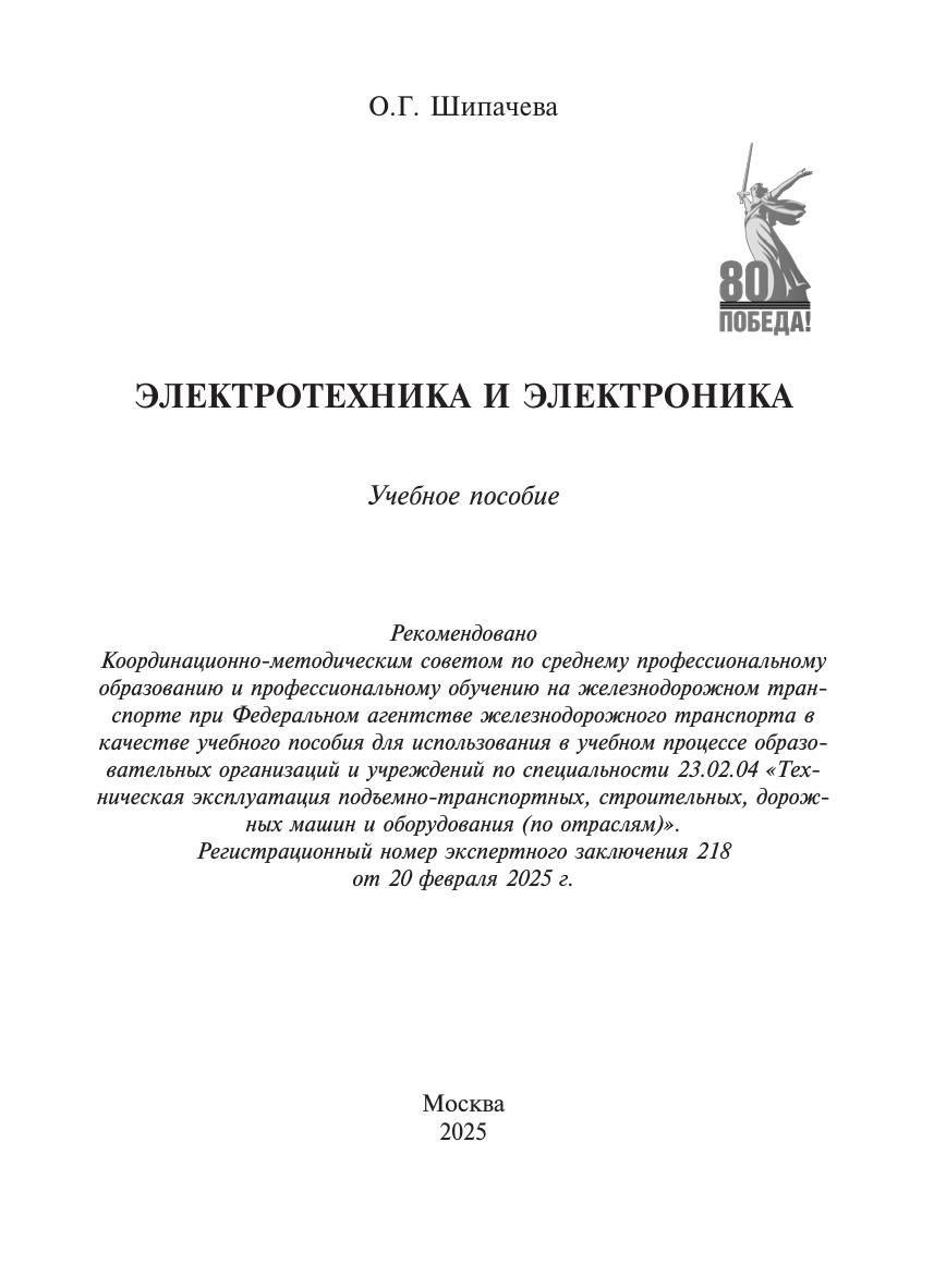 Шипачева, О.Г. Электротехника и электроника : учебное пособие / О. Г. Шипачева. — Москва : УМЦ ЖДТ, 2025. — 128 с. — 978-5-907836-30-3. — Текст : электронный // УМЦ ЖДТ : электронная библиотека. — URL: https://umczdt.ru/books/1063/296842/ (дата обращения 08.02.2026). — Режим доступа: по подписке.