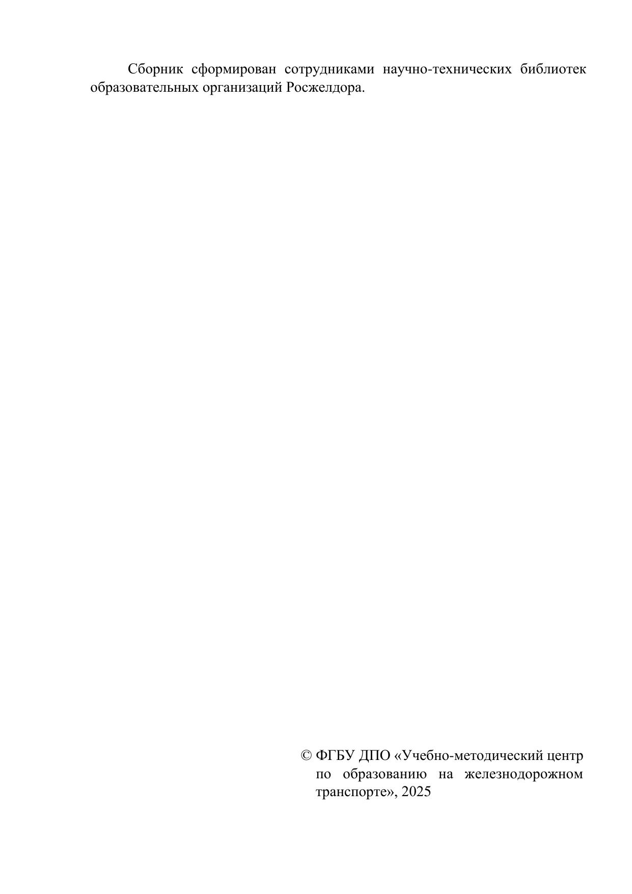 Сборник сформирован сотрудниками научно-технических библиотек образовательных организаций Росжелдора.