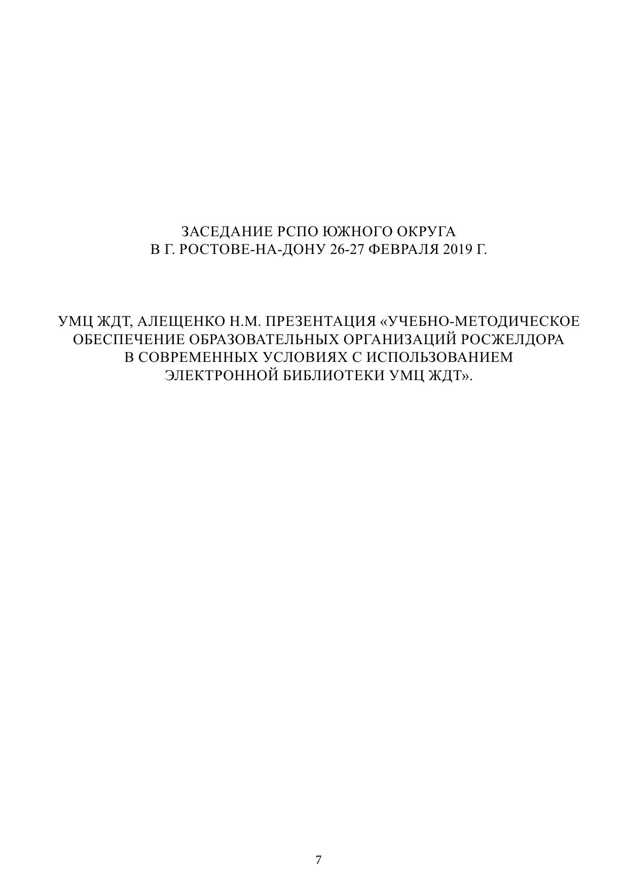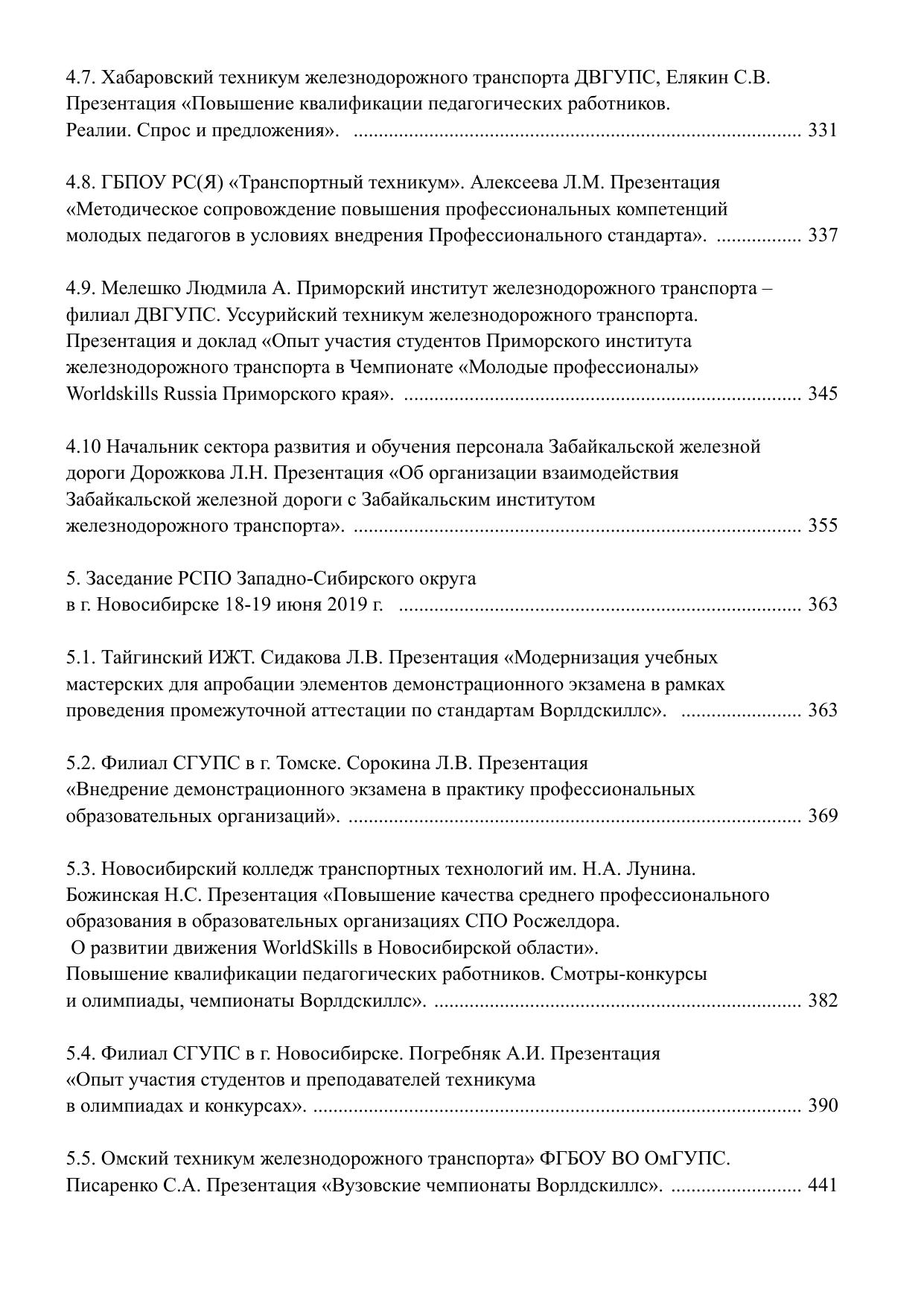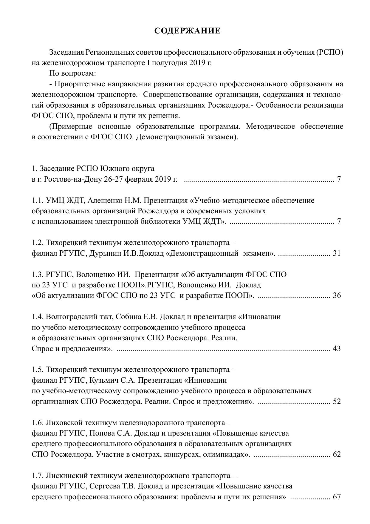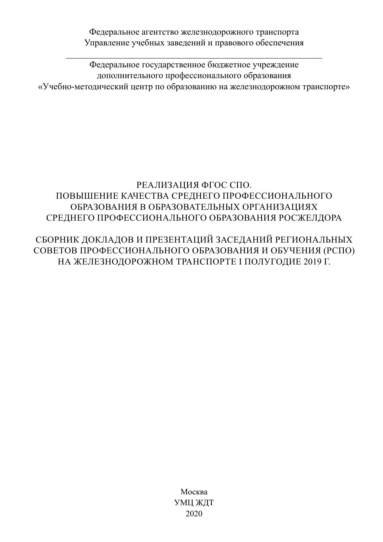 Сборник докладов и презентаций заседаний Региональных советов профессионального образования и обучения (РСПО) на железнодорожном транспорте I полугодие 2019 г.