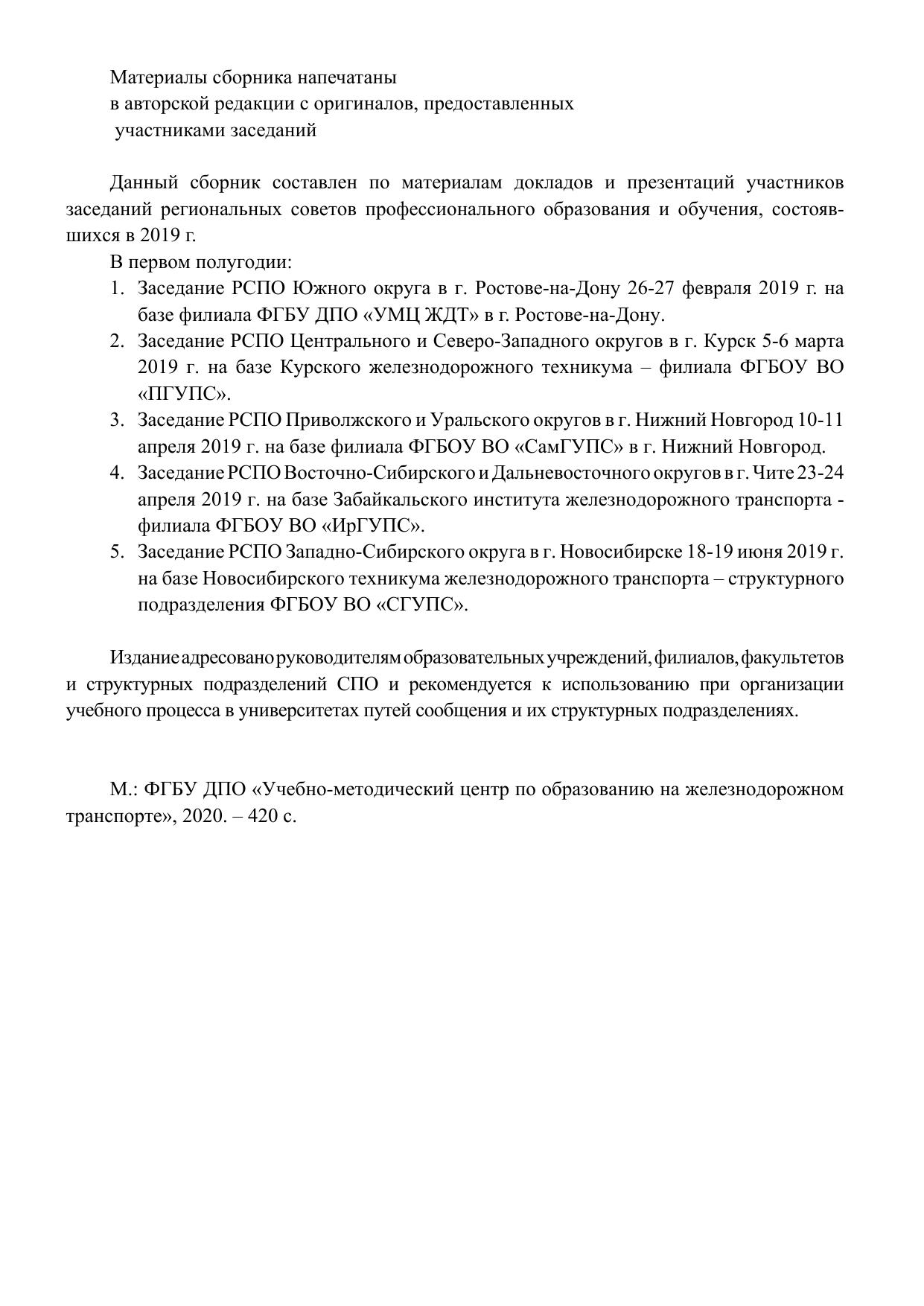 , Сборник докладов и презентаций заседаний Региональных советов профессионального образования и обучения (РСПО) на железнодорожном транспорте I полугодие 2019 г. : сборник / . — Москва : ФГБУ ДПО «Учебно методический центр по образованию на железнодорожном транспорте», 2020. — 420 с. — Текст : электронный // УМЦ ЖДТ : электронная библиотека. — URL: https://umczdt.ru/books/994/247848/ (дата обращения 16.11.2025). — Режим доступа: по подписке.
